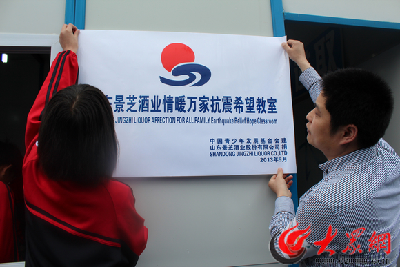 景芝酒業(yè)為捐助蘆山中學(xué)希望教室貼標(biāo)