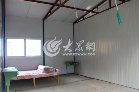 大眾網特派記者走進活動板房看到,每間板房的面積大約為38平方米,可容納10個人臨時居住,搭建好的12間活動板房可容納120人居住,總價值達15萬元。劉志剛說,等地震過后,這些板房還可以用來做學校的臨時教室,用處還有很多。