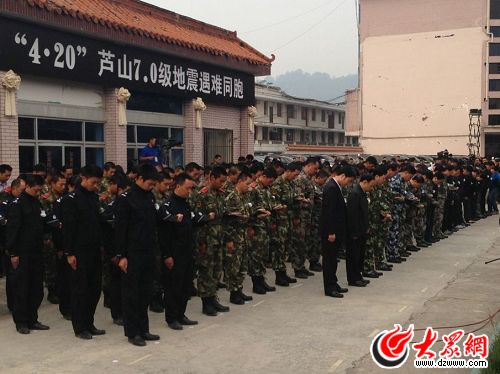 大眾網蘆山4月27日訊(特派記者 盛堃 尹海洋 李兆輝)今天距離雅安“4·20”地震已經7天了,今早8:00開始,大眾網特派記者在蘆山縣政府廣場現場直播哀悼活動。今天上午8點02分,四川全省深切哀悼在“4·20”蘆山7.0級地震中遇難的同胞。四川省委省政府主要領導、參與救援戰士和自發趕來的群眾在蘆山縣人民政府廣場參與哀悼活動。