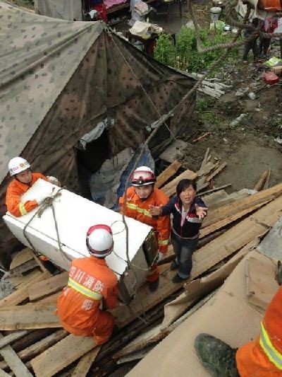 一名雅安籍消防戰士含淚奮戰在搶險救援一線