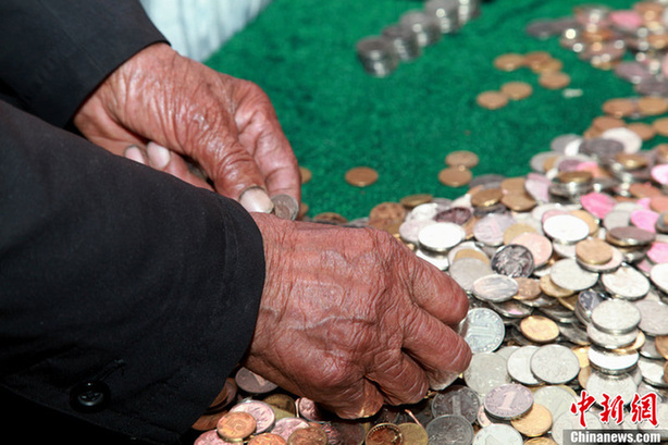 感動! 江蘇"磨刀老人"將兩年所攢兩千硬幣捐給災區