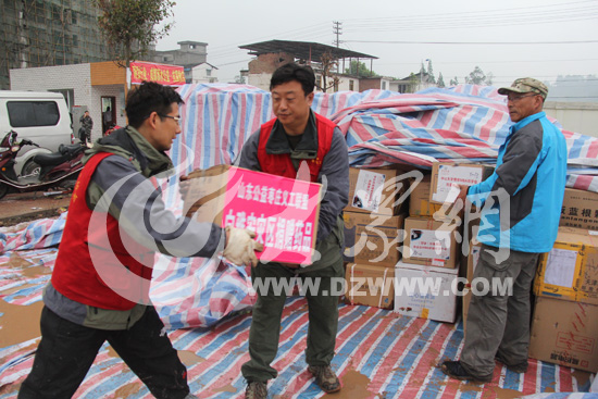 山東3人送來3箱藥物 8小時(shí)冒雨裝卸物資