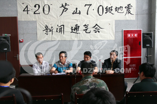 “4·20”蘆山7.0級地震新聞通氣會現場。大眾網特派記者 攝