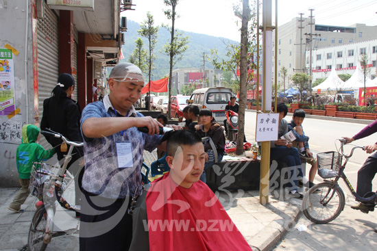 地震受傷不忘感恩 蘆山街頭為群眾免費(fèi)理發(fā)