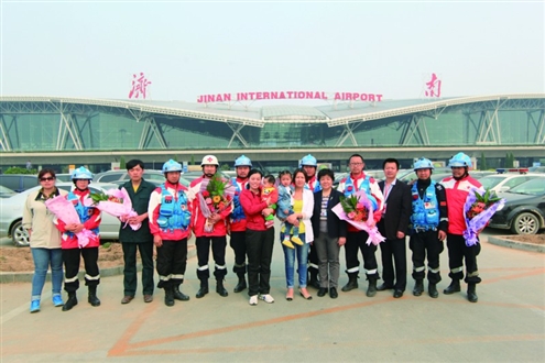 山東紅十字藍(lán)天救援隊(duì)震區(qū)返濟(jì)