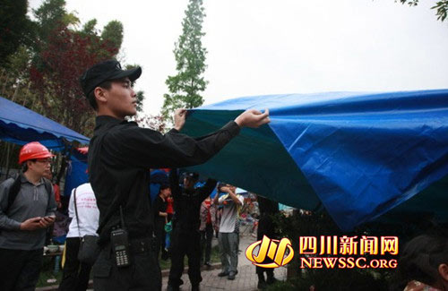 四川特警為災區群眾搭建帳篷
