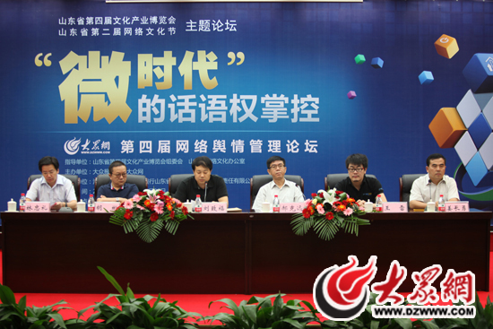 本屆論壇是在山東省第四屆文化產業博覽會組委會、山東網絡文化辦公室的指導下,由大眾報業集團大眾網主辦,海爾集團、中國工商銀行山東省分行、山東中煙工業責任有限公司支持,以“微時代”的話語權掌控為主題,通過“微媒體”發展情況與傳播規律、以微博為媒介的“微時代”網絡傳播模式、“微時代”負面信息的預防與危機處理、微博與論壇互動傳播的輿情應對四個議題的討論,解決在“微時代”下,如何應對危機事件頻發引發的網絡“微傳播”效應,以最快、最佳的方式解決,向公眾傳遞事實信息,進行網絡輿論危機管理,塑造政府和企業良好社會和品牌形象等問題。