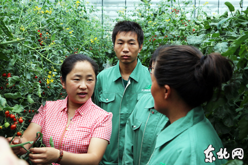 農業示范區內王淑媛詢問番茄生產情況。東北網記者 侯巍 攝
