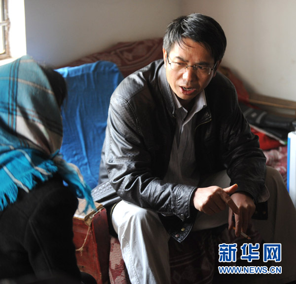陳家順向炎方鄉炎方村村民介紹出國務工情況(2012年3月26日攝)。新華社記者 秦晴 攝