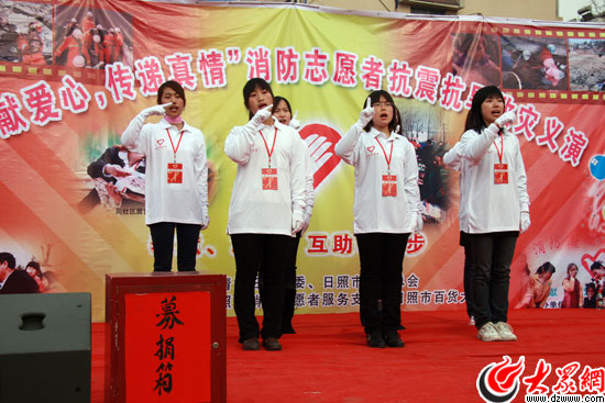 2008年,支隊花費兩萬余元購置演出設備,開展演藝人才專題招募,形成一支完善高效演出隊伍。每年定期開展“港城之夏”系列消防文藝演出、119消防宣傳月系列文藝演出。2008年5月12日,四川汶川、北川發生里氏8.0級地震,日照消防志愿者服務支隊迅速行動,舉辦抗震救災募捐文藝演出募集善款。