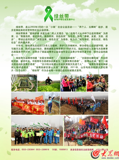 十年間,綠絲帶先后組織2萬余人次,植綠、養護3萬余株樹木,舉辦綠色公益講座56期,參與賑災義演、慰問活動17場次,募捐善款及物資累計100余萬元,組織700余人次參與大型賽事志愿服務3500小時,舉辦了首屆淄博市公益交流年會以及青少年綠色夏令營、綠色公益拍賣會……