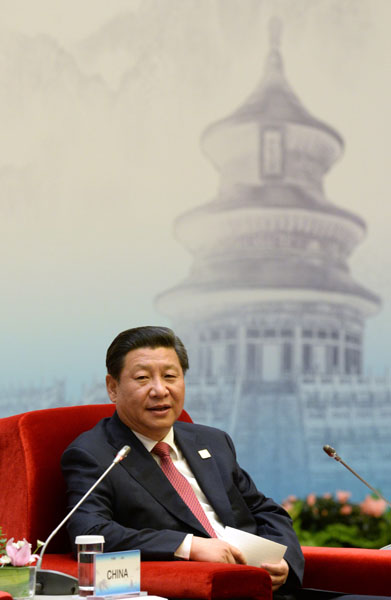 習近平強調,中方今年接過亞太經合組織東道主的重任,愿意以此為契機,積極推進本地區貿易和投資自由化便利化,加快區域經濟一體化,增強各成員經濟技術合作能力,攜手推動亞太地區發展繁榮,共建面向未來的亞太伙伴關系。