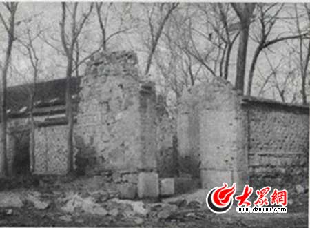 1938年1月30日,日寇炮擊河?xùn)|村炸毀的民宅門樓殘跡