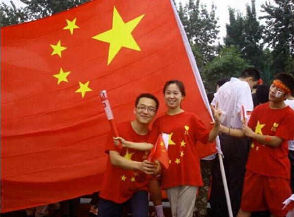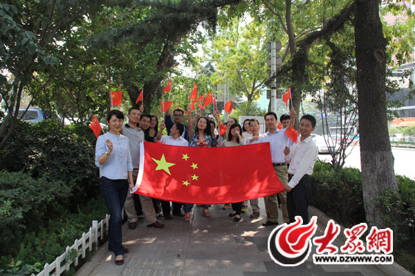 大眾網青島站工作人員在青島市山東路與國旗合影,為祖國點贊!