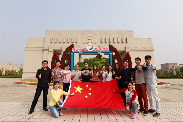 9月23日,正值秋分時節,東營大眾網工作人員在東營新世紀門廣場前,與國旗合影留念,為中國點贊。