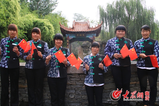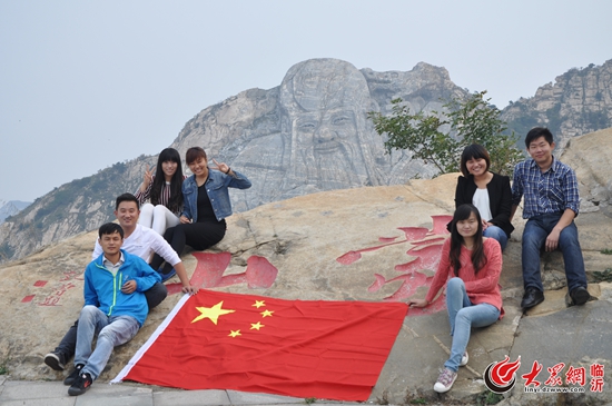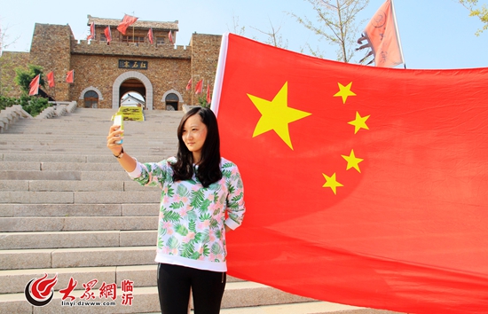 臨沂:景區內與國旗合影 我為家鄉而自豪