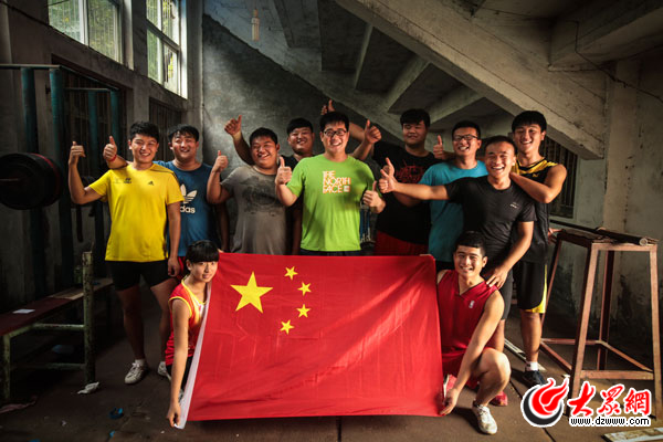 身著運動服,臉上青春洋溢。濟南高三體育生在訓練場地與國旗合影,為祖國點贊。