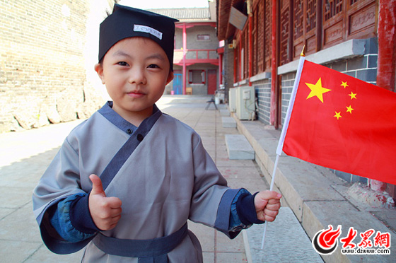 濟南、威海、濰坊、煙臺……自該項活動開展以來,全省各地民眾紛紛與國旗合影,為共和國送上祝福。截止到9月30日14點,大眾網累計發布“與國旗合影”千余張,這還不包括通過微博、微信等平臺“秀照片”參與活動的數萬網友。這些照片中的主人公,有中小學生、鐵路工人、特警,也有大眾網各地方站工作人員;有剛上幼兒園的三歲孩童,也有年過六旬的退休老人。大家有的選擇當地具有代表性的地標建筑或名勝古跡,有的把合影地點選在自己工作的崗位上,不同的照片背景表達著數萬網友共同的聲音:無論身在何方,我們都同在一面國旗下。