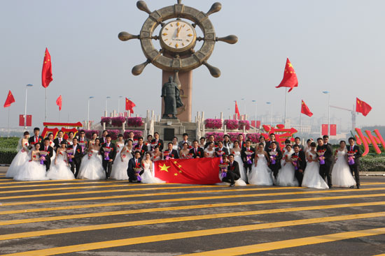 26對新人在與國旗合影