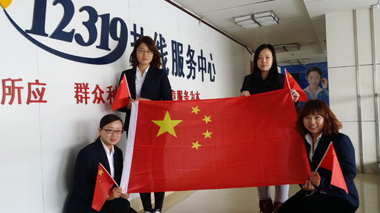 濟寧市住建委12319熱線服務中心工作人員代表與國旗合影