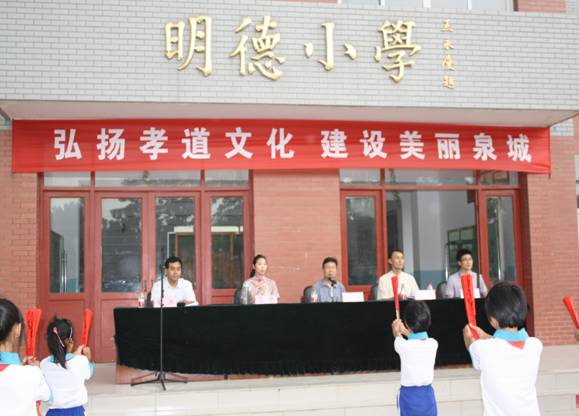 孝文化進學(xué)校,圖為明德小學(xué)舉辦“弘揚孝道文化,建設(shè)美麗泉城”公益講座