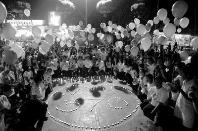 3月17日,上百名馬來西亞華人在吉隆坡增江北區大草場為失聯馬航客機祈福。京華時報記者陶冉攝