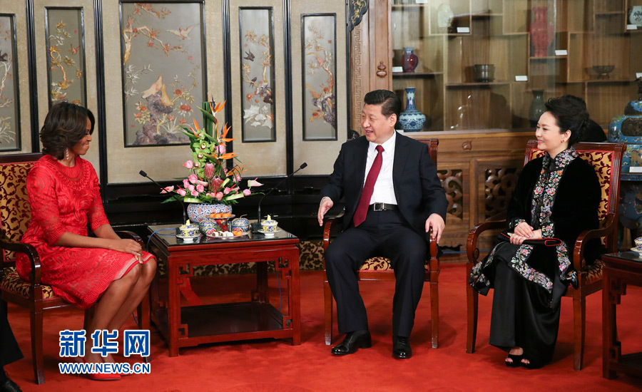 3月21日,國家主席習(xí)近平和夫人彭麗媛在北京釣魚臺國賓館會見美國總統(tǒng)奧巴馬夫人米歇爾。 新華社記者 蘭紅光 攝 新華網(wǎng)北京3月21日電(記者郝亞琳)國家主席習(xí)近平和夫人彭麗媛21日晚在釣魚臺國賓館會見美國總統(tǒng)奧巴馬夫人米歇爾。 習(xí)近平歡迎米歇爾女士偕母親羅賓遜夫人和女兒訪華,請她轉(zhuǎn)達(dá)對奧巴馬總統(tǒng)的親切問候和良好祝愿。 習(xí)近平強調(diào),中美關(guān)系對兩國和世界都十分重要。我珍視同奧巴馬總統(tǒng)業(yè)已建立的良好工作關(guān)系和友誼。我們通過會晤、通話、通信等方式保持著密切聯(lián)系。我期待過兩天在荷蘭海牙同奧巴馬總統(tǒng)再次會晤,也歡迎他今年11月來北京出席亞太經(jīng)合組織領(lǐng)導(dǎo)人非正式會議。我相信,通過雙方共同努力,中美關(guān)系一定會朝著構(gòu)建新型大國關(guān)系的目標(biāo)不斷向前發(fā)展。 米歇爾向習(xí)近平轉(zhuǎn)達(dá)奧巴馬總統(tǒng)的問候。她表示,我和母親、女兒一起到國外旅行非常難得,能夠到中國訪問,更感榮幸。我們?nèi)腋兄x習(xí)近平主席會見和彭麗媛女士邀請,感謝中方熱情接待。今天是我們訪問活動的第一天。我們有機會同中國青年學(xué)生交流,還參觀了故宮。這些經(jīng)歷讓我們難忘。我希望今后有更多機會來中國訪問。我鼓勵我的女兒和美國青少年多了解和學(xué)習(xí)其他國家的傳統(tǒng)和文化。現(xiàn)在有越來越多的美國孩子在美國學(xué)習(xí)中文或到中國留學(xué)。青少年交流對美中關(guān)系非常重要。 習(xí)近平對米歇爾說,你們這次訪問以教育為主題,這很好。尊師重教是中國的傳統(tǒng)。教育事關(guān)國家未來,年輕人是國家希望。中美教育交流發(fā)展很快。兩國年輕一代可以通過交流擴展知識和視野,增進(jìn)相互了解和友誼。 習(xí)近平表示,你們這次除北京外,還要去西安和成都。祝你們在中國度過一段愉快、難忘的時光。 彭麗媛表示,中美文化和教育各有特色,可以互學(xué)互鑒。希望更多的美國朋友能夠分享你們在中國的見聞,了解中國悠久的歷史文明和當(dāng)代發(fā)展進(jìn)步,也希望你們把中國人民的友誼傳遞給美國人民。