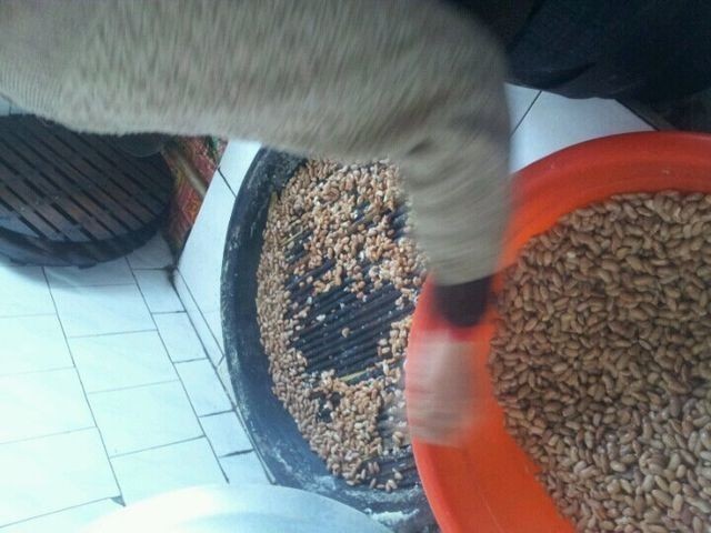 媽媽用自己種的飯豆子,現把豆子放鍋里煮7分熟,然后撈出來,把豆子鋪在蒸簾上,然后把粘米粉一把一把灑在豆子上,灑5寸厚,邊灑邊燒火,蒸氣上勻稱蓋上鍋蓋,燒半小時火,起鍋就好了。媽媽做的粘糕,每年過年必吃,粘上白糖,非常好吃。