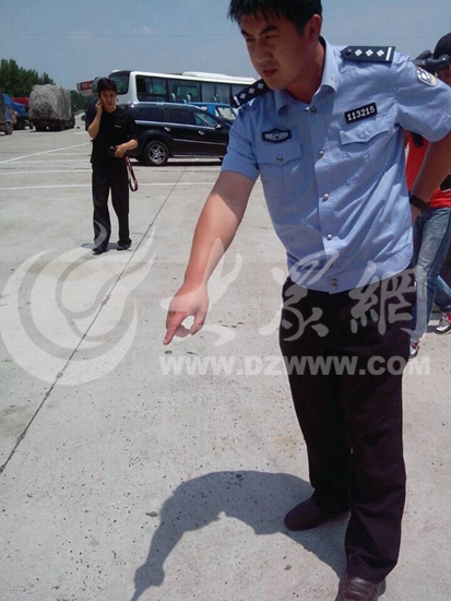 地上的黑色顆粒是當時撞車后留下的碎玻璃(記者 李敏 攝)