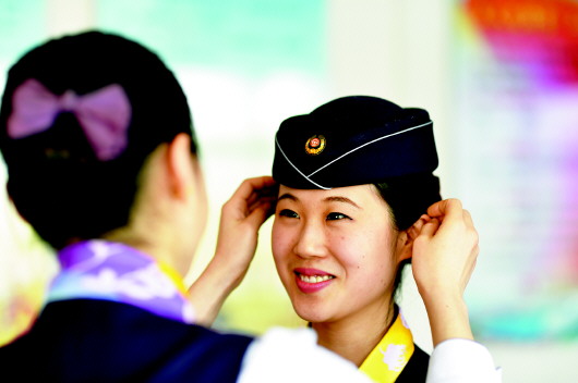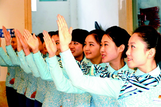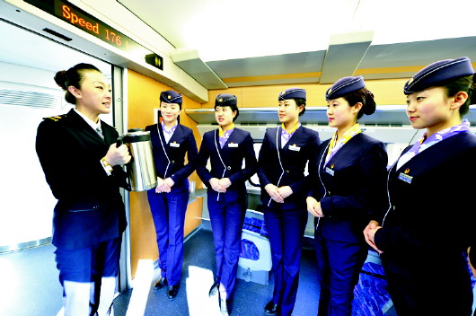 12月22日,濟南鐵路局青島客運段的一間會議室里,蘇海麗正與她的姐妹們一起參加青榮城鐵乘務服務最后幾天的培訓。一個多月來,這些漂亮的姑娘們在這里、在列車上、在站臺上接受了被她們稱為“魔鬼般”的訓練。她們不僅將成為即將于本月28日開通的青(島)榮(成)城際鐵路的列車乘務員,而且將是這趟列車最靚麗的形象代言者。
