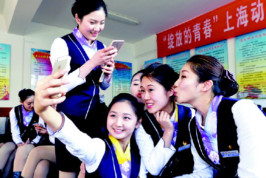 訓練間隙,愛美的姑娘們不忘留下美好的記憶。