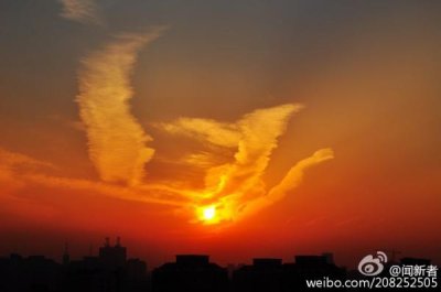 北京晚霞現“火鳳凰”奇觀 栩栩