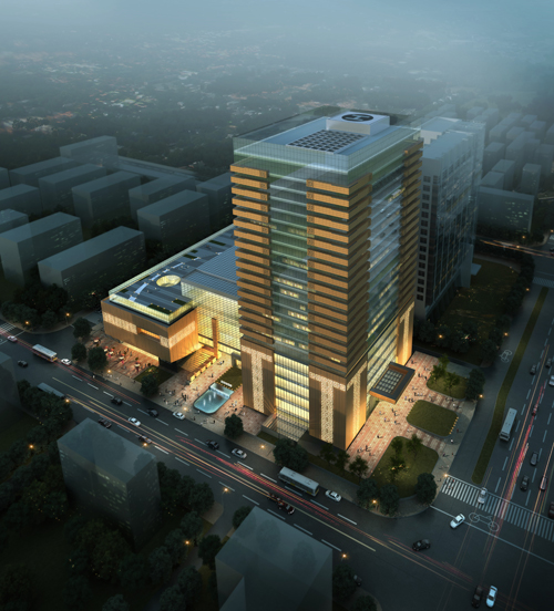 山東書城項目總建筑面積約13.1萬平方米。項目規劃為酒店、會議中心、商業區、寫字樓四部分。其中地上建筑面積共9萬平方米,地下3層建筑面積共4.1萬平方米。停車位共計約900輛(含機械停車)。具體規劃設計情況為: