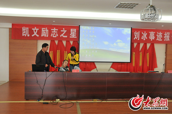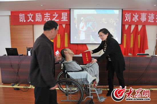 現在,劉冰同學已成為章丘市作家協會會員、山東省作家協會會員。事跡被濟南電視臺等多家媒體報道。從他身上,我們看到那種身殘志堅、自強不息的奮斗精神,看到了那種對人生充滿希望和積極樂觀向上的生活態度。他成為當代青年踐行社會主義核心價值觀的楷模。參加報告會的師生無不被劉冰同學的生動事跡所感動。劉冰在報告會上勉勵同學們要珍惜健康的身體,刻苦學習,努力成才。
