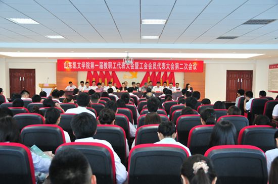 在大會閉幕式上,代表們以舉手表決的方式,審議并通過了山東凱文科技職業(yè)學院第一屆教職工代表大會暨工會會員代表大會第二次會議《關(guān)于學院工作報告的決議》、《關(guān)于工會工作報告的決議》、《關(guān)于工會經(jīng)費審查報告的決議》、《關(guān)于教職工代表大會實施細則的決議 》、《關(guān)于人事管理條例的決議》。