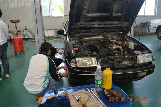 學院實訓室共有12個工位,12臺架,12部車,組織46個生產中的項目,確保每個學生均掌握46個項目,采取全能發動的車輛,進行保養、故障維修、各種零配件的更換,一般利用一學期來進行臺架操作訓練,實訓之后,就能夠頂班生產,提高就業質量。