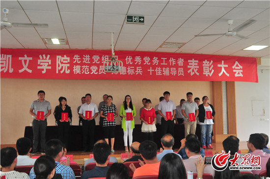 大眾網(wǎng)濟(jì)南9月18日訊(記者 滿德利 通訊員 魏本江)9月17日,山東凱文科技職業(yè)學(xué)院在學(xué)術(shù)報(bào)告廳召開了全體教職工大會(huì),表彰了第二屆先進(jìn)基層黨組織、模范共產(chǎn)黨員、優(yōu)秀黨務(wù)工作者和師德標(biāo)兵、十佳輔導(dǎo)員。