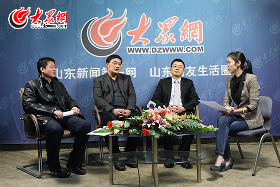 山東財經大學財政稅務學院副院長李森(中),山東百丞稅務咨詢有限公司總經理朱自勇(右),山東中匯稅務咨詢有限公司副總經理馬永文(左)做客大眾網談營改增和房產稅 楊春衛 攝