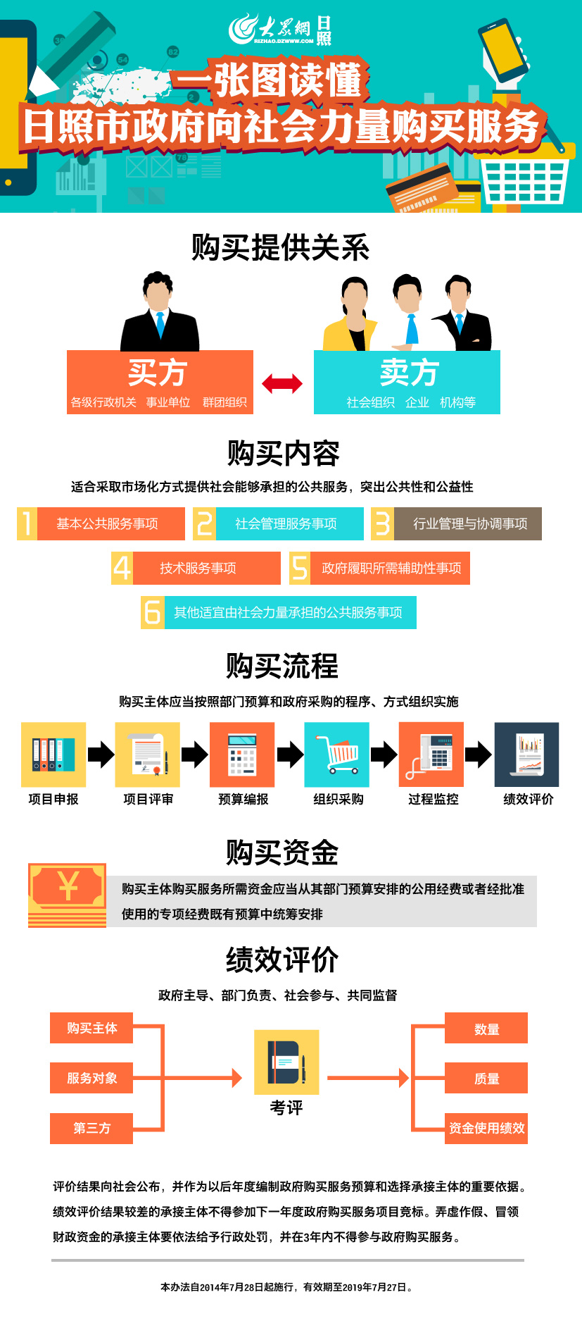 7月28日,日照市人民政府辦公室印發了《政府向社會力量購買服務管理辦法》(以下簡稱《辦法》),標志著日照政府購買服務有了“規矩”。《辦法》對購買主體、購買內容、購買程序與方式、資金管理與保障監督等都進行了詳細的闡述,其中的政府向社會力量購買服務指導目錄包含了6大類、316項具體的政府向社會力量購買服務事項。
