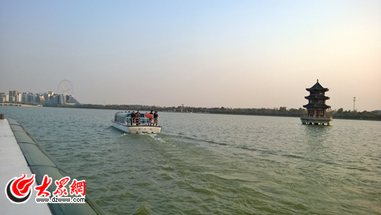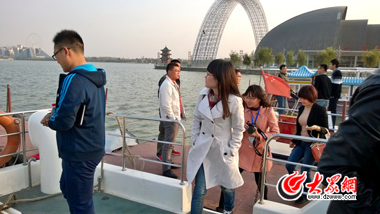 10月27日下午,聚焦“一圈一帶”第十屆中國網絡媒體山東行采訪團記者泛舟東昌湖采訪。記者 馬俊驥 攝