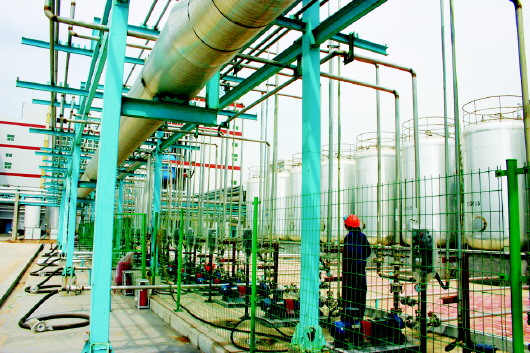 <通過招商引資和扶持本地企業(yè)發(fā)展,臨邑縣投產(chǎn)和在建的以齊魯制藥、信立泰制藥為龍頭的醫(yī)藥企業(yè)及生產(chǎn)基地達(dá)20多家,形成一個集產(chǎn)品研發(fā)、藥物鑒定、生產(chǎn)銷售于一體,年銷售收入過百億元的現(xiàn)代生物醫(yī)藥產(chǎn)業(yè)體系。圖為齊魯制藥臨邑生產(chǎn)基地裝置一角。