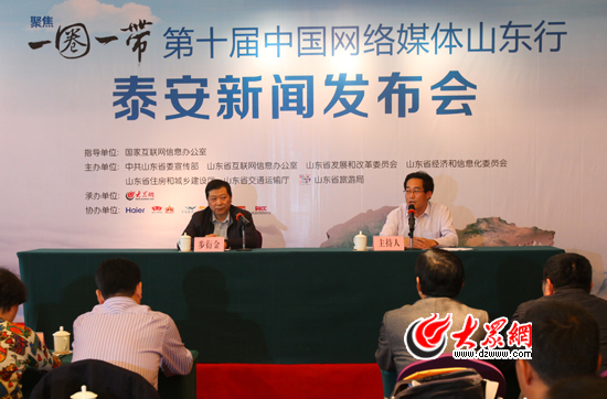 “聚焦‘一圈一帶’——第十屆中國網絡媒體山東行”泰安新聞發布會現場。