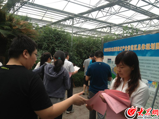 “聚焦美麗山東——第九屆中國網(wǎng)絡(luò)媒體山東行”南線采訪團(tuán)來到泰安花樣年華生態(tài)農(nóng)業(yè)園。(大眾網(wǎng)記者 李兆輝攝)