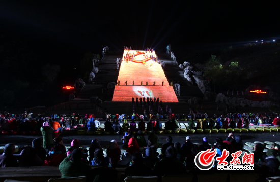 金戈鐵馬的戰爭場面,上百名樂官、儒生聚首的盛大典禮,金碧輝煌威嚴無比的皇家儀仗,徐徐展開的水墨畫與婉約清新的宋詞小令……11月1日晚上的泰山腳下,漢的儒風雅樂、唐的開放大氣、宋的藝術情懷等等一齊穿越時空,在這古老的禮儀重現中精彩匯聚。大型實景演出《中華泰山·封禪大典》融自然生態景觀與歷史文化為一體,為采訪團記者們帶來了一場氣勢磅礴的視聽盛宴。