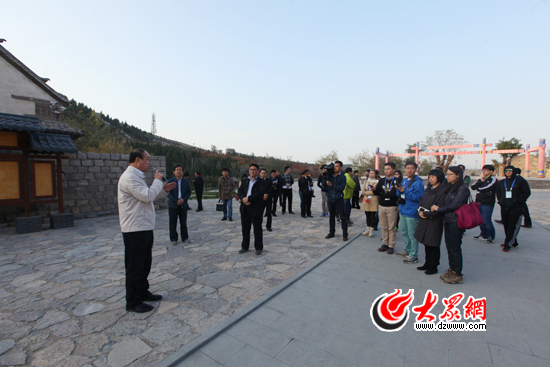 27日,章丘市市委書記江林向媒體行采訪團介紹章丘旅游模式,借用混合所有經濟搞活旅游產業。