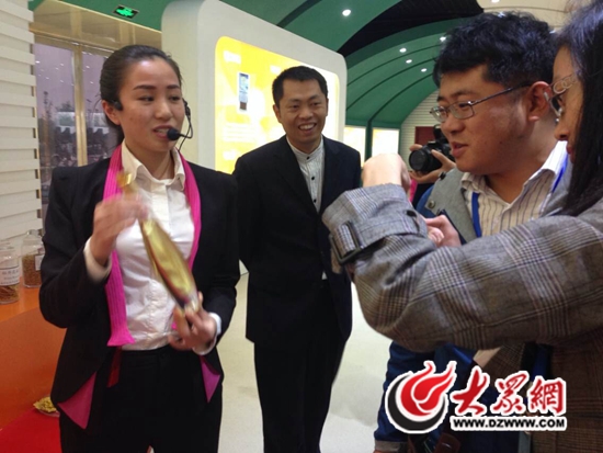 說起牡丹,大家都會想到美麗的牡丹花,但您可知道牡丹還能做商品?牡丹茶、牡丹糕、牡丹籽油……一走進盛華牡丹園的牡丹展覽館,各種牡丹制品便展現在記者們眼前。近年來,菏澤特別重視牡丹全產業鏈布局發展的戰略,2014年,專門安排4000萬元財政扶持牡丹產業化。利用45萬畝牡丹的資源優勢,在大批龍頭企業的帶動下,牡丹從傳統的藥用、觀賞向食品加工、醫藥化工、日用化工、營養保健等九大領域縱深發展!皼]想到小小的牡丹花還能做出這么多產品!”不少記者感嘆到。