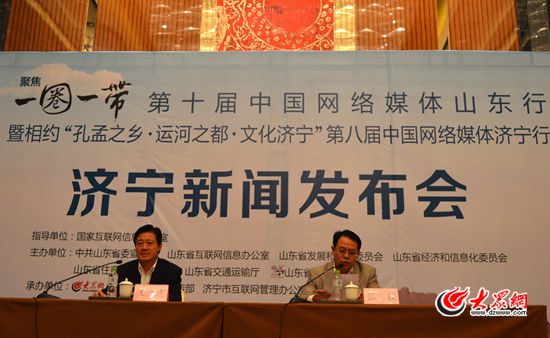 10月29日下午,“聚焦‘一圈一帶’——第十屆中國網絡媒體山東行”濟寧新聞發布會召開,濟寧市委常委、宣傳部長王次忠就濟寧經濟社會發展情況進行主題發布,濟寧市委宣傳部副部長張弢主持新聞發布會。記者 王宗陽 攝