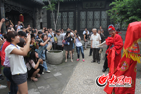 今天上午,北線采訪團走進周村古城大街,民俗婚禮當街上演,瑞蚨祥老號里回味魯商文化,大染坊內見證絲綢古鎮的繁華。記者們置身古城老巷中,恍然間回到了百年前那個繁華鼎盛的“旱碼頭”。