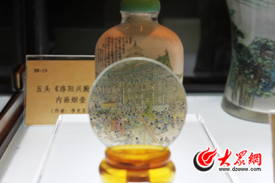 琉璃博物館內展出的現代內畫鼻煙壺。大眾網記者 馬鑫 攝