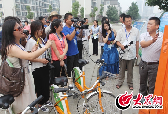 大眾網棗莊6月22日訊(記者 赫洋 郭豪 呂斌)22日下午,“聚焦美麗山東——第九屆中國網絡媒體山東行”西線采訪團來到棗莊街頭,體驗棗莊市的城市公共自行車服務系統。目前,棗莊市共有1100輛公共自行車投入使用,市民可通過辦理“誠信卡”借用自行車。系統投入運行后,可分擔公交出行率達10%以上,減少碳排放量近2000噸。